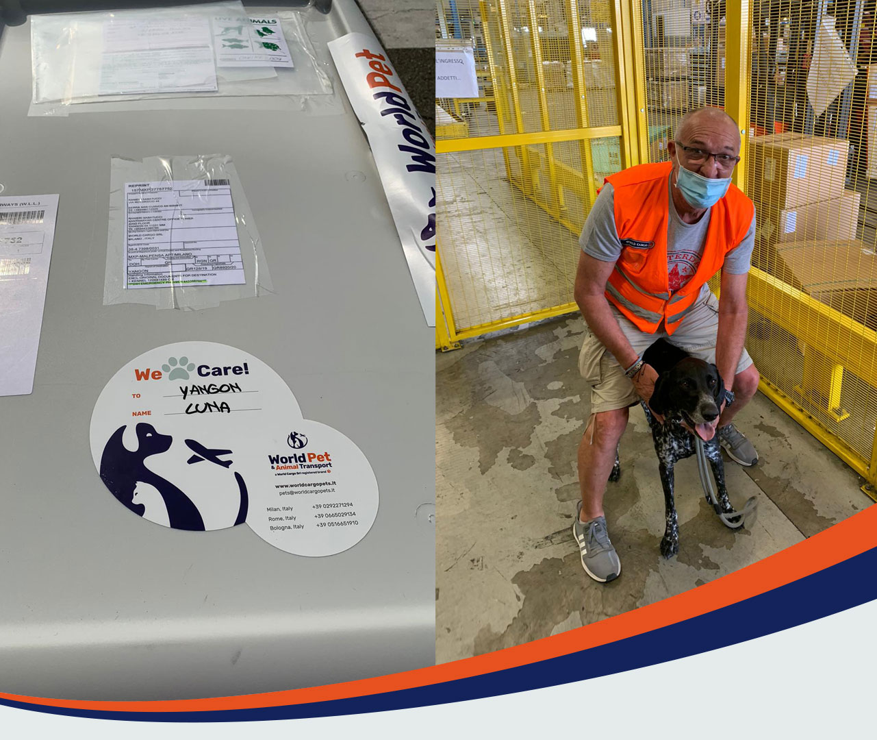 "I am an officer of the Italian Foreign Ministry and in the last thirty years I have travelled to far away countries, very different from our Europe. I have come across dogs and cats in very dire situations and I have always tried to find a new home for them. In some cases I adopted them and they followed me in my travels and relocations around the world. It is with my extensive experience that I recommend World Cargo (owner of the brand World Cargo & Pets) for the relocations of your furry friends. In the last and very complex relocation from Rome to Yangon, where no flights that carry pets in their cargo holds land, I entrusted the people at World Cargo with this complicated journey. I found very trustworthy, very serious and tenacious people, capable of overcoming various difficulties and, above all, capable of a mix of very strong skills and precious traits of care and humanity"